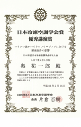 「Numerical Simulation of Solution Effect on Freezing and Thawing of Fish Tissues」 ・M1九郎丸彰宏君 「Porous Si Based Membrane Electrode Assembly and its Performance」 ・M1由井涼君 「Evaporation of Sessile Droplet on Nano/microstructured Surface」